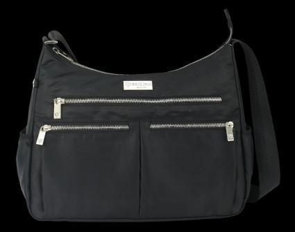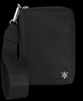 All-round zip entry. Inside one zipper pocket, one open pocket and two multipurpose pockets. Outside front has a pocket with 5 cc slots with RFID protection. Back full-length zip pocket. Cross body strap with full adjustable and removable maximum drop of 26”. (13.5” x 10” x 5” .). 12021-BLK