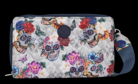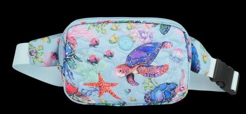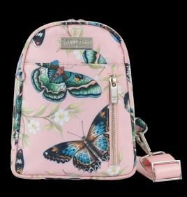 All-round zip entry to the main compartment. Inside one zipper pocket and one open pocket. Outside rear has a zip pocket. Adjustable strap with buckle and with a drop of max 23”. (8.25” x 5.5” x 2.5”).
