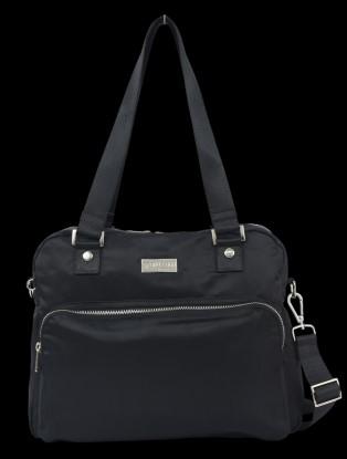 Top zip entry to the main compartment, Inside One full length zippered wall pocket. One padded laptop sleeve with Velcro. One water bottle holder. Outside front has one zippered wall pocket. One zip around pocket, which include 3 RFID protected CC case and two pen holders. Rear one zippered wall pocket. Shoulder handle drop 11”. Cross body strap with full adjustable & removable maximum drop of 26”. ( 14” x 11” x 5.25”.