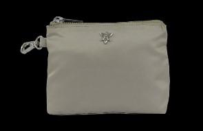Top zip entry to the main compartment. Inside one zipper pocket and one open wall pocket.. (7" x 4.5" x 2").