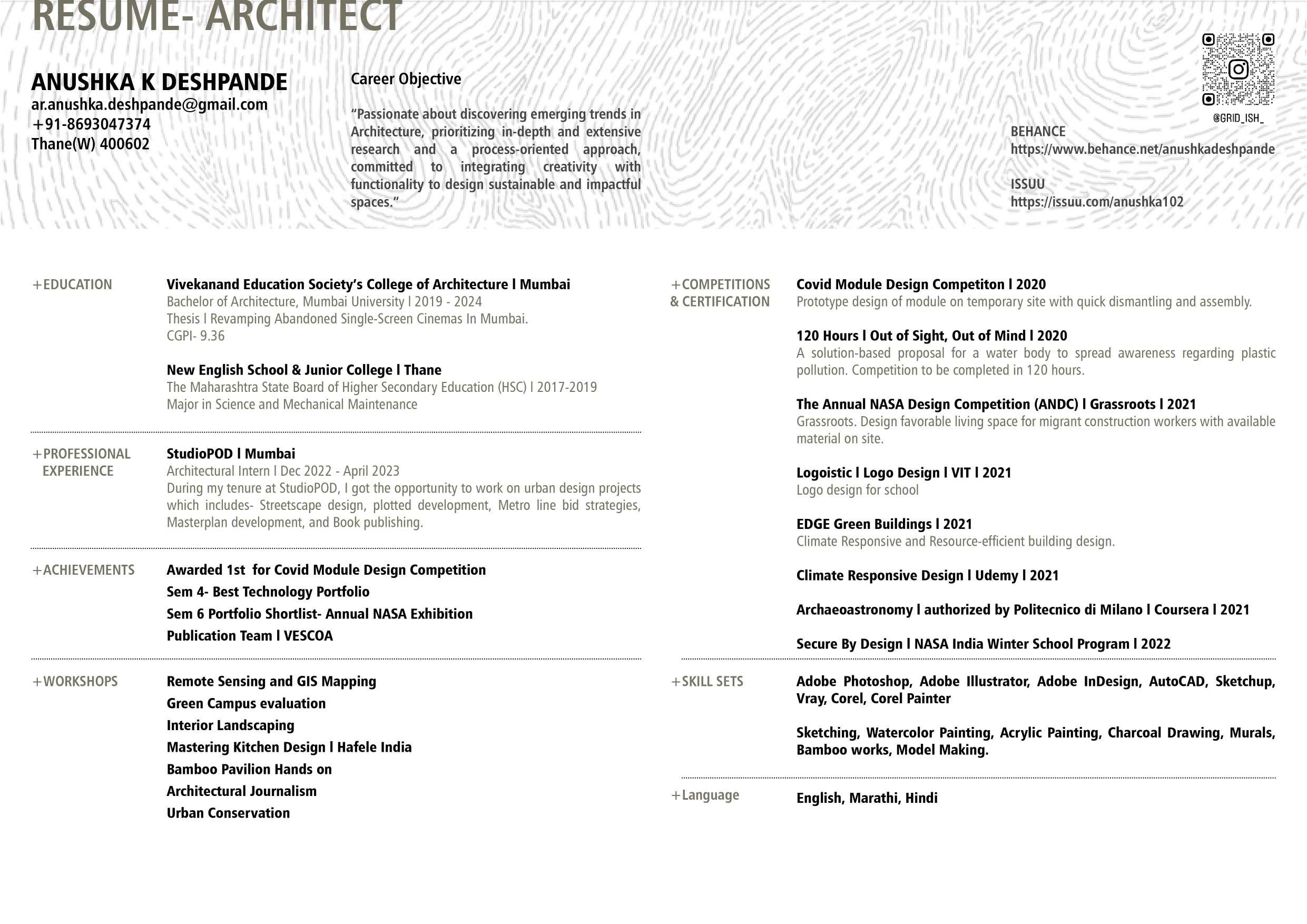 ll Anushka K Deshpande ll Architectural Portfolio ll 2019-2024 ll