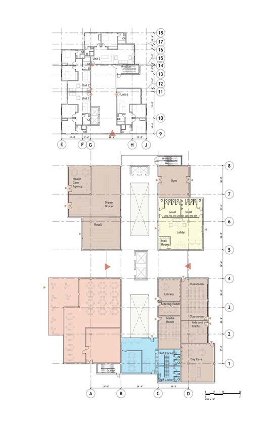 With three major typologies, my partner and me designed a cohesive housing with 16 units, with 4 duplex units on the ground floor, and the apartments and studios on the higher floors.