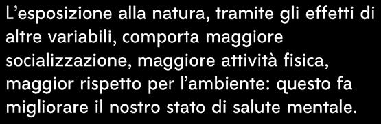 Quando riscontriamo un aspetto negativo come la stanchezza o lo stress, l’esposizione alle aree verdi o blu comporta un recupero delle facoltà cognitive o dell’autoregolazione emotiva. .