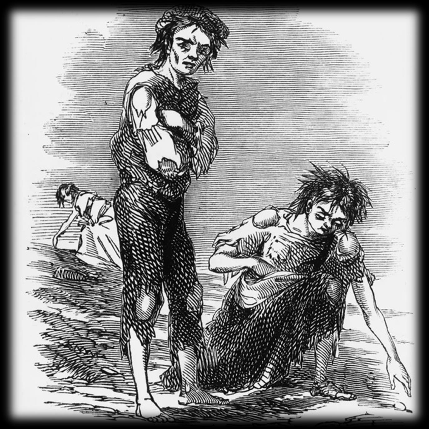 Illustrazione del 1846 che mostra un ragazzo e una ragazza affamati mentre rastrellano il terreno durante la carestia delle patate irlandese, iniziata negli anni Quaranta del XIX secolo.