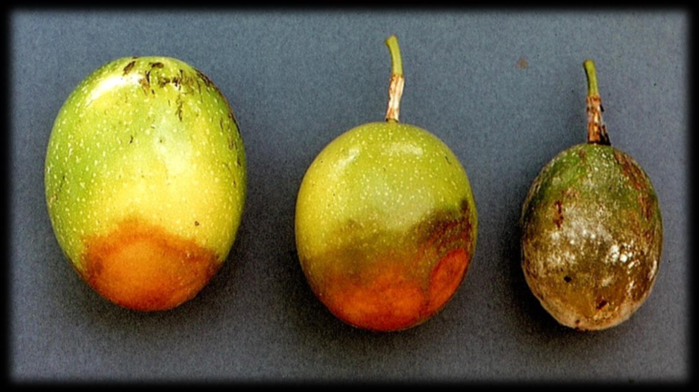 Macchie sui frutti di colore brunastro o grigio-verdastro ed interessano le bacche ancora verdi.