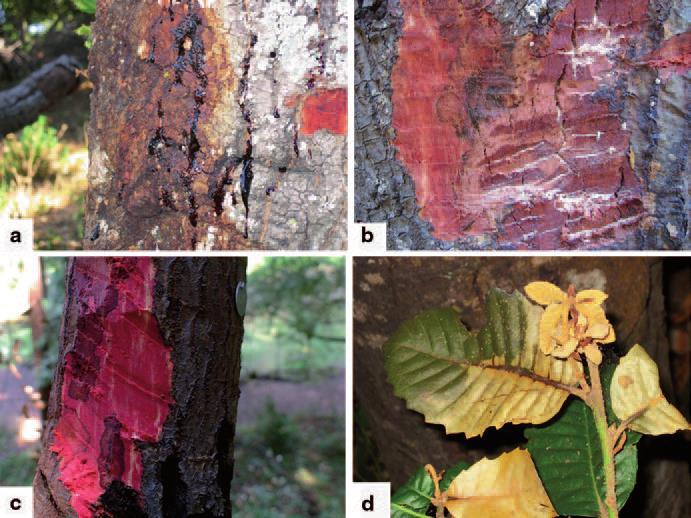 Lesioni da marciume del colletto e morte di radici laterali causate da P. cinnamomi su Quercus