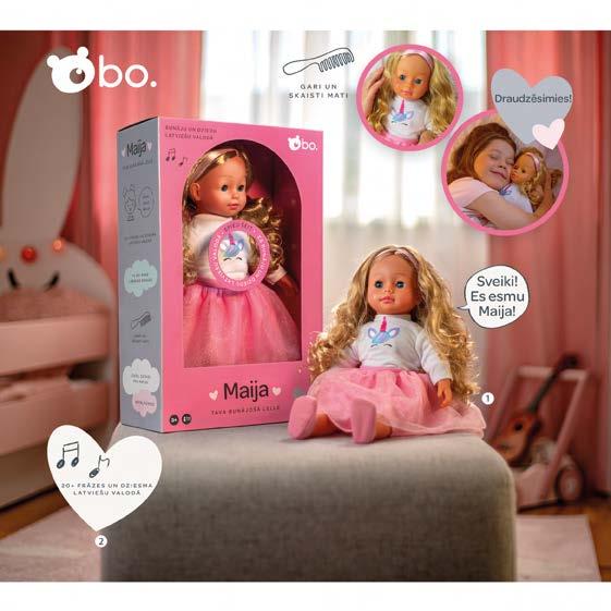 32 Vairāk produktu pieejami XS Rotaļlietas veikalos un e-veikalā www.xsrotallietas.lv LELLES UN LEĻĻU AKSESUĀRI Runājošā lelle Maija - tava labākā draudzene! Maija latviešu valodā spēj pateikt vairāk kā 20 frāzes, kā arī dzied vienu dziesmu. Piespied viņas vēderu un paklausies kā viņa runā! Veido Maijai matus, samīļo un spēlējies ar viņu! Ja tu viņu noguldīsi, viņa aizvērs acis! Pieejama arī krievu valodā runājoša lelleMilana! 1.1 BD1225LV bo. interaktīvā lelle “Maija”, (latviešu valodā), 40 cm 2.1 BD1225RU bo. interaktīvā lelle “Milana”, (krievu valodā), 40 cm