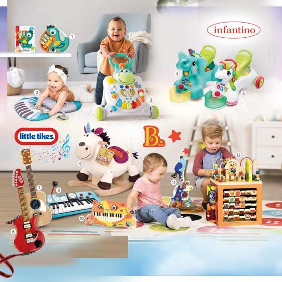 93 ZĪDAIŅU ROTAĻLIETAS Vairāk produktu pieejami XS Rotaļlietas veikalos un e-veikalā www.xsrotallietas.lv 1.1 212011 INFANTINO Muzikālā rotaļlieta “Tukāns” 2.1 313021 INFANTINO Spilvens klavieres, Tummy Time 3.1 315126 INFANTINO Sēdi, staigā un rotaļājies 3-in-1 transformējošs staigulis-galds 4.1 217023 INFANTINO 3-in-1 Sit, Walk & Ride Zilonis 5.1 227018 INFANTINO Braucamrīks 3in1 “Vienradzis” 6.1 654800 LITTLE TIKES elektriskā ģitāra “My Jam” 7.1 654794 LITTLE TIKES akustiskā ģitāra “My Jam” 8.1 654817 LITTLE TIKES sintezators “My Jam” 9.1 BX1660Z B. TOYS Šūpuļzirdziņš, Vienradzis 10.1 BX1025Z B. TOYS Meowsic klavieres 11.1 BX1206Z B. TOYS Woofer - ģitāra 12.1 BX1004XK B. TOYS Koka aktivitāšu kubs Jautrs un pārdomāts dizainsInfantino produkti mazuļiem! Spēlējies un mācies staigāt ar šo staiguli! Jautra rotaļlieta maziem bērniem ar dažādām iespējām! Muzikālās klavieres mazuļiem, lai aktīvi pavadītu punča laiku. Izveido savu grupu ar šiem stilīgajiem mūzikas instrumentiem!