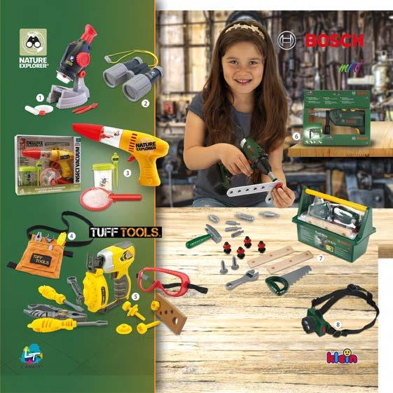 85 LOMU SPĒLES Vairāk produktu pieejami XS Rotaļlietas veikalos un e-veikalā www.xsrotallietas.lv 1.1 76066LT NATURE EXPLORER Mikroskops 2.1 76082LT NATURE EXPLORER Binoklis un periskops 3.1 76061LT NATURE EXPLORER Kukaiņu ķeršanas ar vakuumu komplekts 4.1 51039LT TUFF TOOLS Darbarīku jostas komplekts 5.1 51005LT TUFF TOOLS Vairāku darbarīku komplekts ar gaismas un skaņas funkcijām 6.1 84132 KLEIN Bosch urbis 7.1 85207K KLEIN Bosch instrumentu kaste 8.1 87584 KLEIN galvas lukturis Bosch Lielisks veids, kā spēlēt izlikšanos! Šie produkti mazajiem amatniekiem dod iespēju izspēlēt dažādas būvēšanas un konstruēšanas aktivitātes! Šajā kukaiņu pētniecībaskomplektā tu atradīsi visu, lainoķertu, uzglabātu un izpētītuikvienu kukaini!