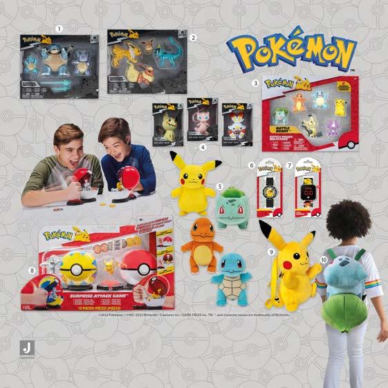5 IEMĪĻOTĀKIE VAROŅI Vairāk produktu pieejami XS Rotaļlietas veikalos un e-veikalā www.xsrotallietas.lv 1.1 PKW2773 POKEMON Select Evolution komplekts (Squirtle, Wartortle, Blastoise) 2.1 PKW2837 POKEMON Select Evolution 4-paka (Eevee, Jolteon, Vaporeon, Flareon) 3.1 PKW2684 POKEMON Figūriņu komplekts, 6 gab. 4.1 PKW0254 POKEMON Vinila figūriņa, 10 cm 5.1 PKW2887-5 POKEMON Select Velveta plīšs, 20 cm 6.1 POK9048 POKEMON Analogais pulkstenis, melns 7.1 POK4322 POKEMON Digitālais pulkstenis, melns 8.1 PKW2474 POKEMON Pārsteiguma uzbrukuma spēle 9.1 MC111PK POKEMON Pikachu, 23 cm 10.1 MC113PK POKEMON Bulbasaur, 19 cm Sakrāj visu Evolution Pokémon līniju ar šo Select Evolution komplektu! Tagad tu vari ņemt Pikaču līdzi savos piedzīvojumos! Stilīgs digitālais pulkstenis! CĪŅA ACI PRET ACI!