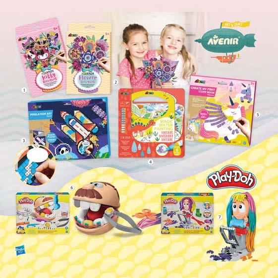 81 MĀKSLA UN ROKDARBI Vairāk produktu pieejami XS Rotaļlietas veikalos un e-veikalā www.xsrotallietas.lv Uzlīmē uzlīmes uz šīmfigūrām un radi savu pirmokrāsaino stāstu grāmatu! Hmm? Par ko tu vēlies kļūt - zobārstu vai frizieri? Ar šiem jautrajiem Play-Doh komplektiem tu vari iegūt nepieciešamās zināšanas un uzzināt par ko tu vēlies kļūt! 1.1 CH211731 AVENIR Skrāpējamo attēlu komplekts - Kaķēni 2.1 CH211734 AVENIR Skrāpējamo attēlu komplekts - Ziedu pušķis 3.1 CH191598 AVENIR Pikseļu māksla - Kosmoss 4.1 CH211776 AVENIR Burvju ūdens glezna - Dinozauri 5.1 CH211590 AVENIR Izveidojiet savu pirmo stāstu grāmatu: Mozaīka bērniem - Vienradži 6.1 F1259 PLAY-DOH Zobārsts 7.1 F1260 PLAY-DOH Frizieris Pielīmē skaitlim!