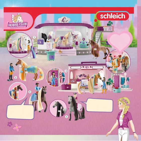 73 KOLEKCIONĒJAMĀS ROTAĻLIETAS Vairāk produktu pieejami XS Rotaļlietas veikalos un e-veikalā www.xsrotallietas.lv 1.1 42588S SCHLEICH SOFIA´S BEAUTIES skaistumkopšanas salons 2.1 42585S SCHLEICH SOFIA´S BEAUTIES Kim un Caramelo sākuma komplekts 3.1 42587S SCHLEICH SOFIA´S BEAUTIES pop-up SPA 4.1 42586S SCHLEICH SOFIA´S BEAUTIES Leo un Rocky sākuma komplekts 5. 1 42584S SCHLEICH SOFIA´S BEAUTIES Sofia un Dusty sākuma komplekts Es un Dusty ir gatavi treniņam! Paskaties, cik skaisti sakopta Dusty izskatās!Visiem Sofias Beauties zirgiem ir īsti un satriecoši skaisti mati! Zirgu skaistumkopšanas salons piepilda visas vēlēšanās! Gatavoties zirgu skaistumkopšanas konkursiem ir tik viegli! Ātra pārbaude pirms kāpšanas uz skatuves? Tu izskaties satriecoši!