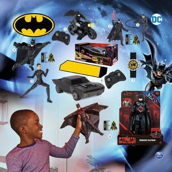 12 Vairāk produktu pieejami XS Rotaļlietas veikalos un e-veikalā www.xsrotallietas.lv IEMĪĻOTĀKIE VAROŅI Šis Betmobīlis ir gluži kā no filmas!Tas ir aprīkots ar ļoti vieglas vadāmības pulti, to vari ērti vadīt dažādos virzienos, un to vari vadīt pat no 30m liela attāluma. Nodrošini drošību Gotemā ar šo autentisko Betmena figūru, kurai ir gan skaņas, gan gaismas efekti! 1.1 6060490 BATMAN 1:10 RC motocikls Batcycle 2.1 6061619 BATMAN figūra ar piederumiem, 10 cm 3.1 6061622 BATMAN figūra ar aksesuāriem Selina Kyle, 10 cm 4.1 6061621 BATMAN figūra Wingsuit Batman, 30cm 5.1 6061624 BATMAN figūra Selina Kyle, 30 cm 6.1 6060469 BATMAN Betmobilis RC, filmas modelis 7.1 BAT9522 BATMAN Analogais pulkstenis, melns 8.1 6060523 BATMAN figūra Wingsuit Batman, 30 cm
