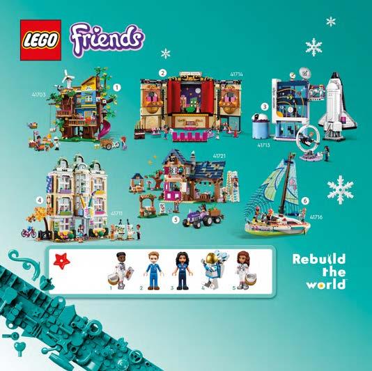 62 Vairāk produktu pieejami XS Rotaļlietas veikalos un e-veikalā www.xsrotallietas.lv KONSTRUKTORI 1.1 41703L LEGO FRIENDS Draudzības māja kokā 2.1 41714L LEGO FRIENDS Andrea teātra skola 3.1 41713L LEGO FRIENDS Olīvijas kosmosa akadēmija 4.1 41711L LEGO FRIENDS Emmas mākslas skola 5.1 41721L LEGO Friends Ekoloģiskā saimniecība 6.1 41716L LEGO FRIENDS Stefānijas burāšanas piedzīvojums Pārbūvēsim Ziemassvētkus! Kurš no varoņiem neiederas šajā lapā?