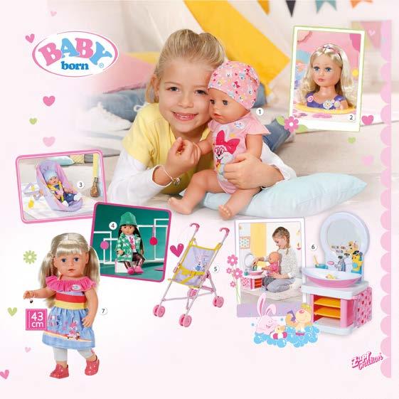 1.1 827956 BABY BORN Magic girl Lelle, 43cm 2.1 825990 BABY BORN Veidošanas galva “Sister” 3.1 829189 BABY BORN Sēdeklis “Comfort” 4.1 830079 BABY BORN Deluxe mētelis, 43cm 5.1 828670 BABY BORN Ratiņi 6.1 832707 BABY BORN Izlietne 7.1 830345 BABY BORN Lelle “Māsa”, 43cm