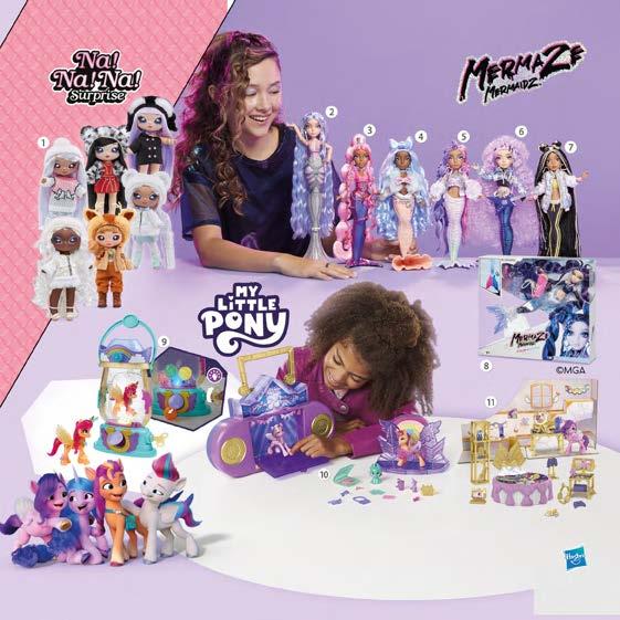 30 Vairāk produktu pieejami XS Rotaļlietas veikalos un e-veikalā www.xsrotallietas.lv LELLES UN LEĻĻU AKSESUĀRI Seko pasakainajām Mermaze Mermaidz spurām, lai atklātu ko pārsteidzošu! Skaisti mati ar greznām frizūrām, krāso tos ar mirdzumiem, kas iekļauti komplektā! Nāriņām ir krāsu mainoša aste, ko var izmantot arī kā lelles atbalstu! Jautras rotaļas gan ūdenī, gan ārpus tā! Na!Na!Na! Surprise mīkstās plīša lelles ar gariem matiem un moderniem tērpiem! Iekaro skatuvi ar My Little Pony! Šī muzikālā skatuve ir gatava tavam priekšnesumam! Maģiska dzirksts, kas iededz laternu - pagriez atslēgu, iededz un atklāj pārsteigumus! 1.1 119340 Na! Na! Na! Surprise 2-in-1 plīša lelle 2.1 580843 MERMAZE MERMAIDZ Deluxe lelle, 36,5 cm 3.1 580805 MERMAZE MERMAIDZ Core lelle - Harmonique, 29 cm 4.1 580829 MERMAZE MERMAIDZ Core lelle - Shellnelle, 29 cm 5.1 581352 MERMAZE MERMAIDZ Core lelle - Kishiko, 29 cm 6.1 580812 MERMAZE MERMAIDZ Core lelle - Riviera, 29 cm 7.1 580836 MERMAZE MERMAIDZ Core lelle - Jordie, 29 cm 8.1 585381 MERMAZE MERMAIDZ Core lelle 9.1 F3329 MY LITTLE PONY “Sparkle Reveal” lukturis 10.1 F3867 MY LITTLE PONY muzikālais rotaļu komplekts 11.1 F3883 MY LITTLE PONY rotaļu komplekts “Princeses istaba”, 7,5 cm