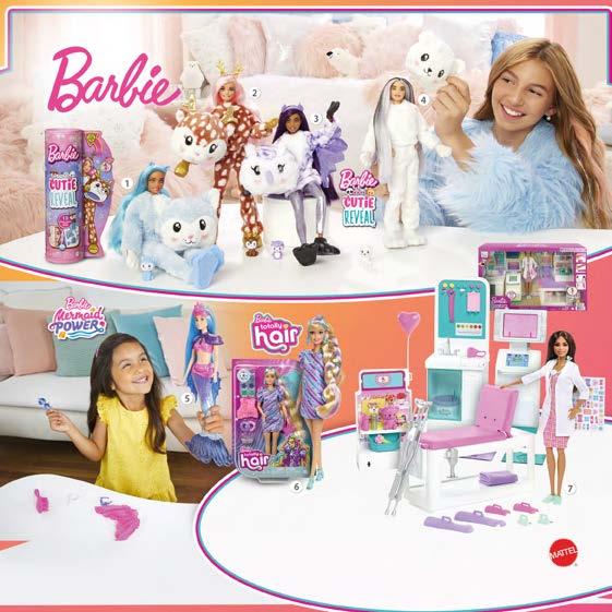 36 Vairāk produktu pieejami XS Rotaļlietas veikalos un e-veikalā www.xsrotallietas.lv LELLES UN LEĻĻU AKSESUĀRI 1.1 HJL63 BARBIE Cutie Reveal rotaļlieta - Haskijs 2.1 HJL61 BARBIE Cutie Reveal Ziemas sērijas lelle - Briedis 3.1 HJL62 BARBIE Cutie Reveal Ziemas sērijas lelle - Pūce 4.1 HJL64 BARBIE Cutie Reveal Ziemas sērijas lelle - Polārais lācis 5.1 HHG52 BARBIE lelle Mermaid Power Malibu 6.1 HCM88 BARBIE lelle Super garie mati (zvaigzne) 7.1 GTN61 BARBIE Lelle ar rotaļu ortopēdijas klīnikas komplektu Atklāj Barbie Cutie! Apskaties, kas slēpjas zem šiem jaukajiem dzīvnieku kostīmiem! Barbie Totally Hair lelle ļaus tev sataisīt brīnišķīgas frizūras! Ienirsti Barbie® Malibu nāriņaspiedzīvojumu pasaulē! Maģiskā nāriņaiir īpaši gari zili mati, skaista aste unmaināmas spuras un dažādi aksesuāri!