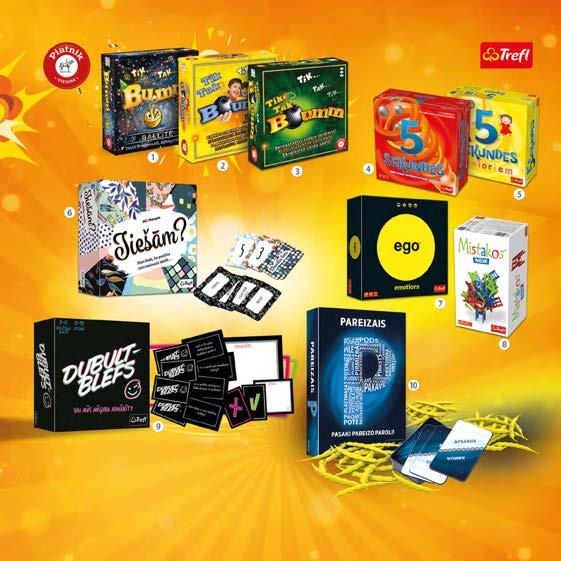 68 Vairāk produktu pieejami XS Rotaļlietas veikalos un e-veikalā www.xsrotallietas.lv GALDA SPĒLES UN PUZLES 1.1 722790 PIATNIK Tik Tak Bomb Ballite LV 2.1 774997 PIATNIK Galda Spele Tik Tak Bumm Junior 3.1 775291 PIATNIK Galda spēle Tik Tak Bumm 4.1 01468 TREFL Spēle 5 sekundes (Latviešu val.) 5.1 01500T TREFL Spēle 5 Sekundes Juniors (Latviešu val.) 6.1 02375T TREFL Spēle “Tiešām?” 7.1 02214T TREFL Spēle Ego Emotions 8.1 01493T TREFL Galda spēle “Mistako” 9.1 02372T TREFL Spēle Dubultblefs LV 10.1 02369T TREFL Spēle Parezais “P” Pareizais P ir jautra galdaspēle, kurā paskaidrojošāskartītes ir jāizskaidro,izmantojot tikai vārdus, kassākas ar burtu “P”! Šī spēle palīdz iepazīt vienamotru labāk! Esi radošs un maldini savus oponentus viltīgi, šajā blefošanas spēlē!