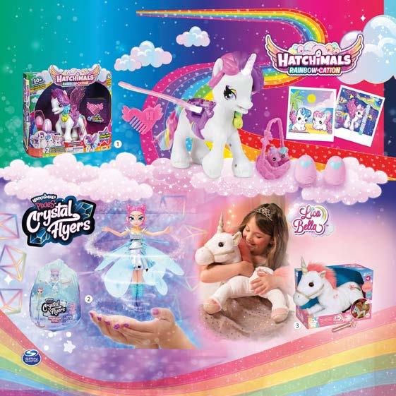 37 LELLES UN LEĻĻU AKSESUĀRI Vairāk produktu pieejami XS Rotaļlietas veikalos un e-veikalā www.xsrotallietas.lv 1.1 6064458 HATCHIMALS Hatchicorn maģiskais spārnotais vienradzis 2.1 6063874 HATCHIMALS Crystal Flyers Lidojoša feja, PopStar 3.1 G056072 GIPSY TOYS Lica Bella interaktīvais vienradzis ar gaismu un skaņu Hatchimal Pixie ir maza feja, kas patiešām varlidot! Pacel to gaisā un vadi ar savu roku, viņaplivināsies virs tās! Licabella spīd un mirdz! Samīļo to un viņa tevi aizvedīs maģiskajā sapņu pasaulē! Šis interaktīvais Hatchimals vienradzis ar vairāk kā 60 iespējām, gaismām un skaņām! Tam ir mirdzoši spārni un daudz dažādi aksesuāri!