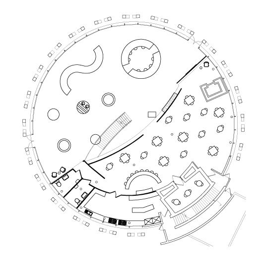 The mezzanines program includes candle and soap making classrooms, a coffee shop and administration spaces. mezzanine level