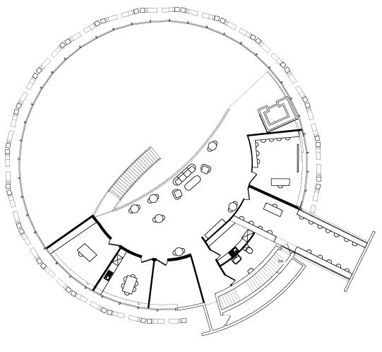The hardest challenge of this project was the shape of the project site, located in a mid-century modern rotunda building with a mezzanine.