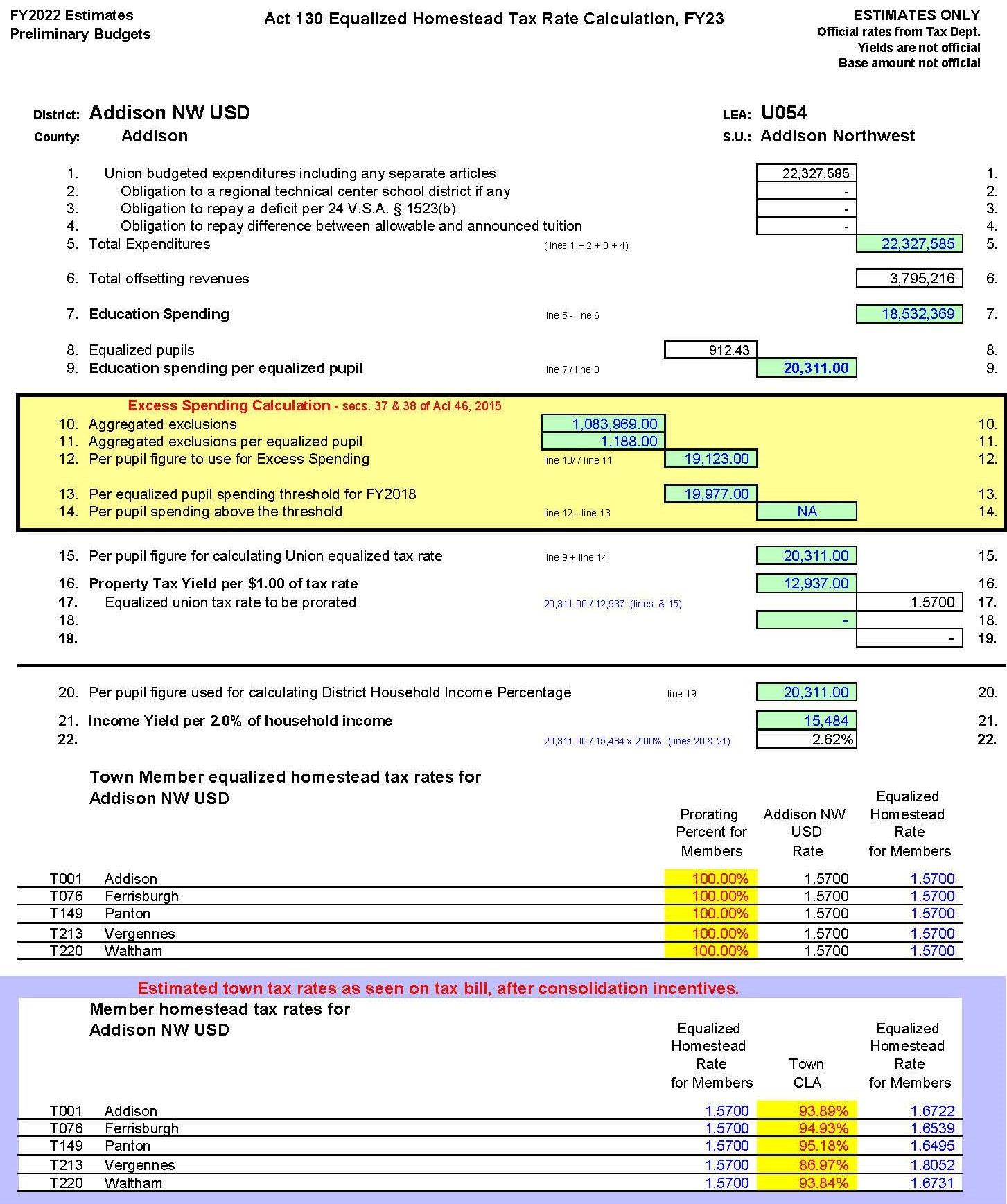 The proposed fiscal year 2023 budget meets the goals of preserving equitable student opportunities, maintaining facilities, and ensuring affordability. This proposed budget makes strategic investments to support professional learning for our staff and faculty and supports efforts to meet student social and emotional needs. It is no surprise that the pandemic has increased student needs and this budget addresses those needs. The proposed FY23 of $22,327,585 is a 3.35% increase from the FY22 budget. In addition, the per pupil spending in this proposed budget is $20,135, a 5.92% from the current rate. This increase allows us to make investments in our students. Because the pandemic significantly impacted the cost of running our schools, our District ended up with an unexpected surplus. In response, the Board intends to use a portion of this surplus to decrease the union tax rate so that even with decreased Common Level of Appraisals all town and the city residents in the District will see a decreased tax rate. This is the second year in a row that all district taxpayers will see an anticipated overall tax decrease. We estimate that over the last two years, our union tax rate has decreased by more than 11%. This shows the Board’s commitment to making education affordable to our community while maintaining high academic standards.