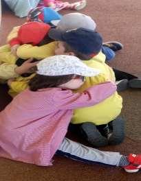 Expresamos co noso corpo como se comporta a auga nos diferentes estados: sólido mediante abrazos, líquido mediante a unión nunha fila e gasoso mediante movementos libres polo espazo.
