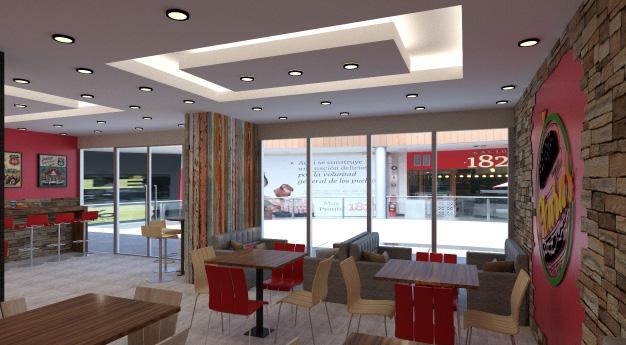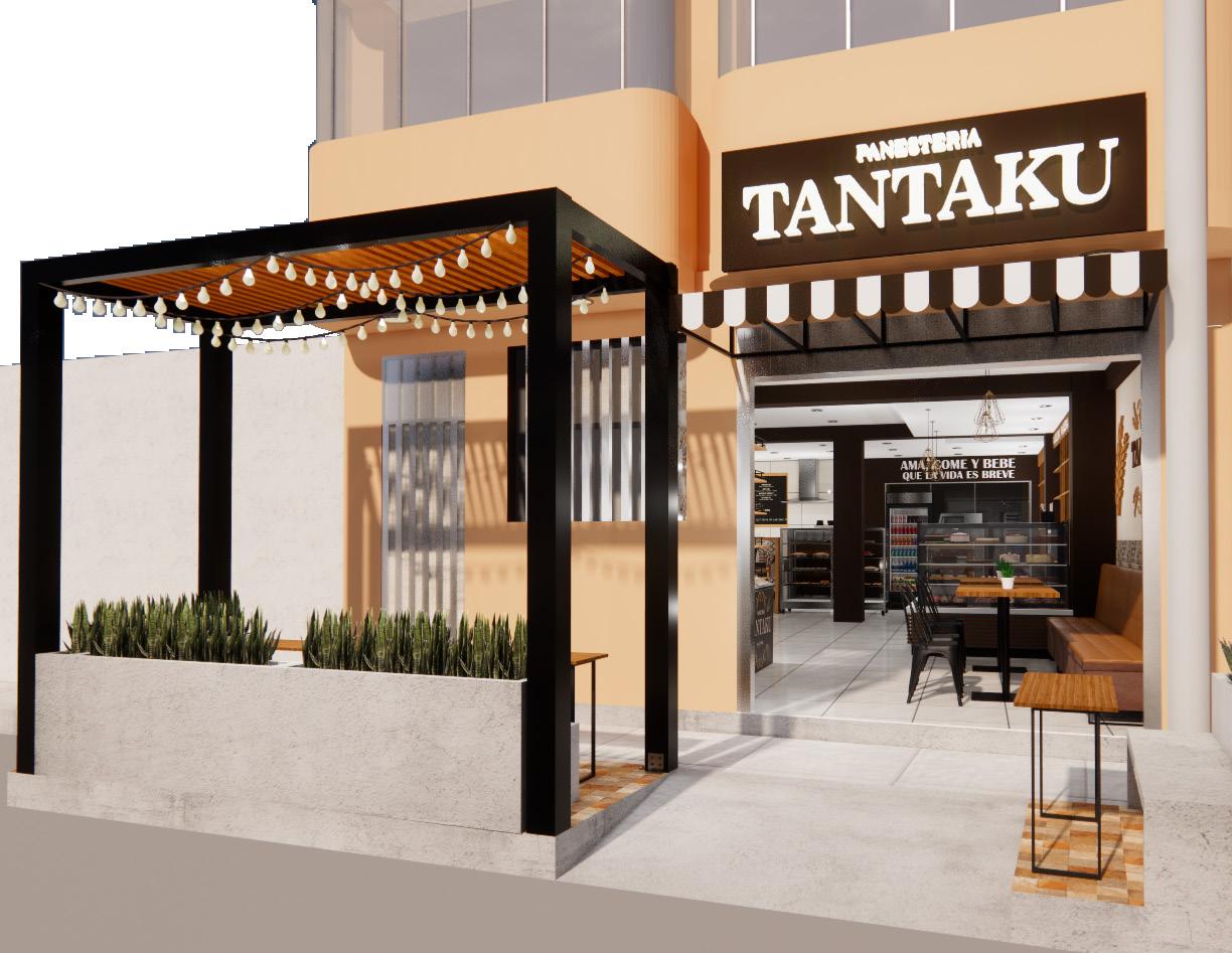Tantaku, proyecto de remodelación para un café-panaderia. El proyeto debia distribuirse principalmente en 2 áreas. área de cocina y área de mesas - despacho.Las áreas se separan principalmente por una mampara que gía directamente hacia la zona de despacho y zona de preparado de modo que no se encuentre a la vista de la zona de mesas. Se busco que el ambiente tenga colores calidos y se respeto la gama de colores que combinen con el logo del proyecto.