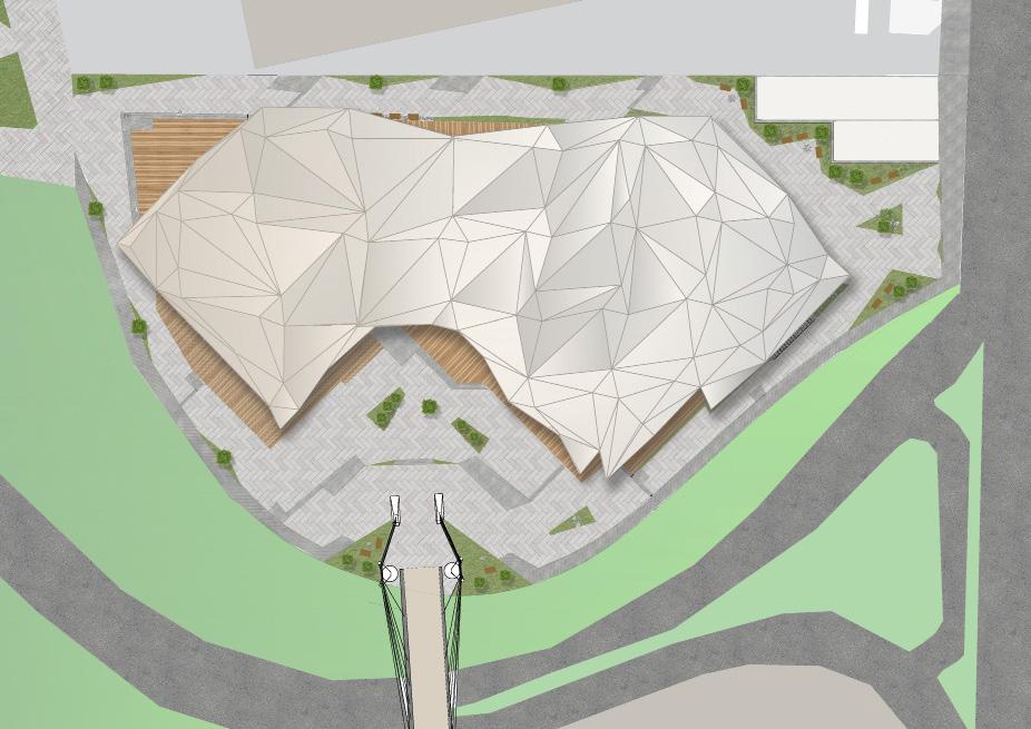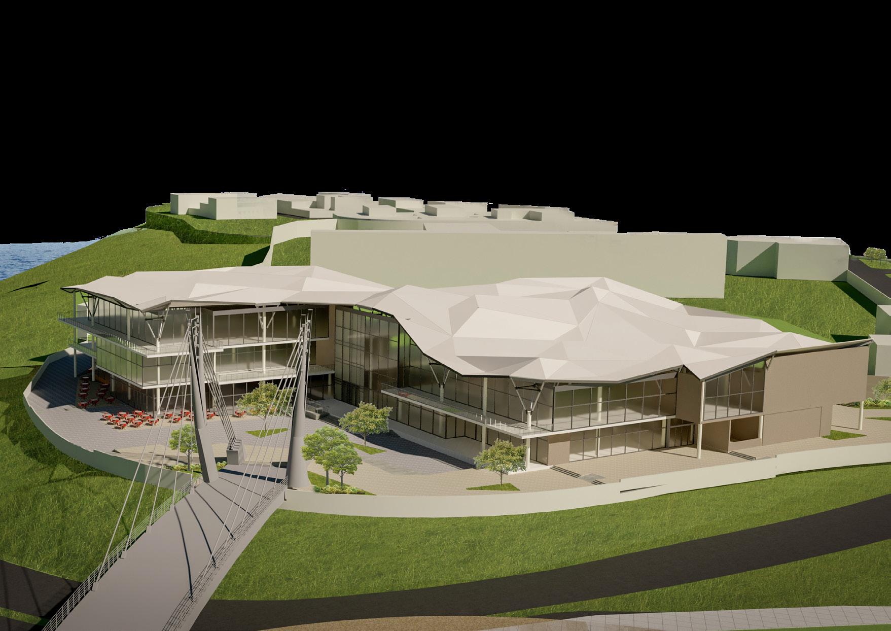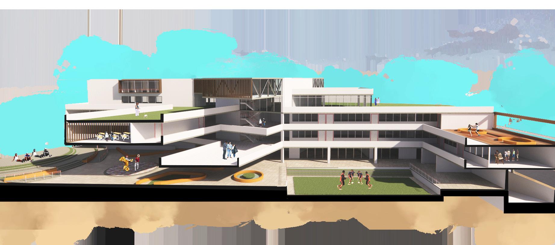 El concepto se baso en sus salientes y formas topograficas para de esta manera generar volumenes en tales direcciones para dar movimiento y continuidaddesde el exterior hacia el interior de todo el Proyecto.