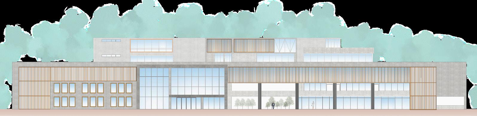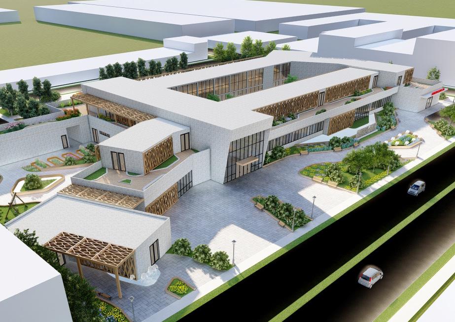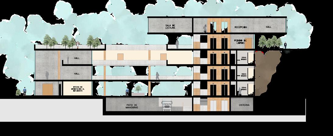 Asimismo, dado a que se ubica en Chorrillos un lugar caracterizado por su flora y en representación de ello se crea un diseño biofilico que forma parte el espacio principal y rodea de todo el proyecto, y para el factor clima se compone una celosia diseño organico que hace referencia a lo natural. Estos elementos hacen que la arquitectura del edifico sea más acogedora en sus espacios genere tranquilidad y terapia a los pacientes, madres y niños.