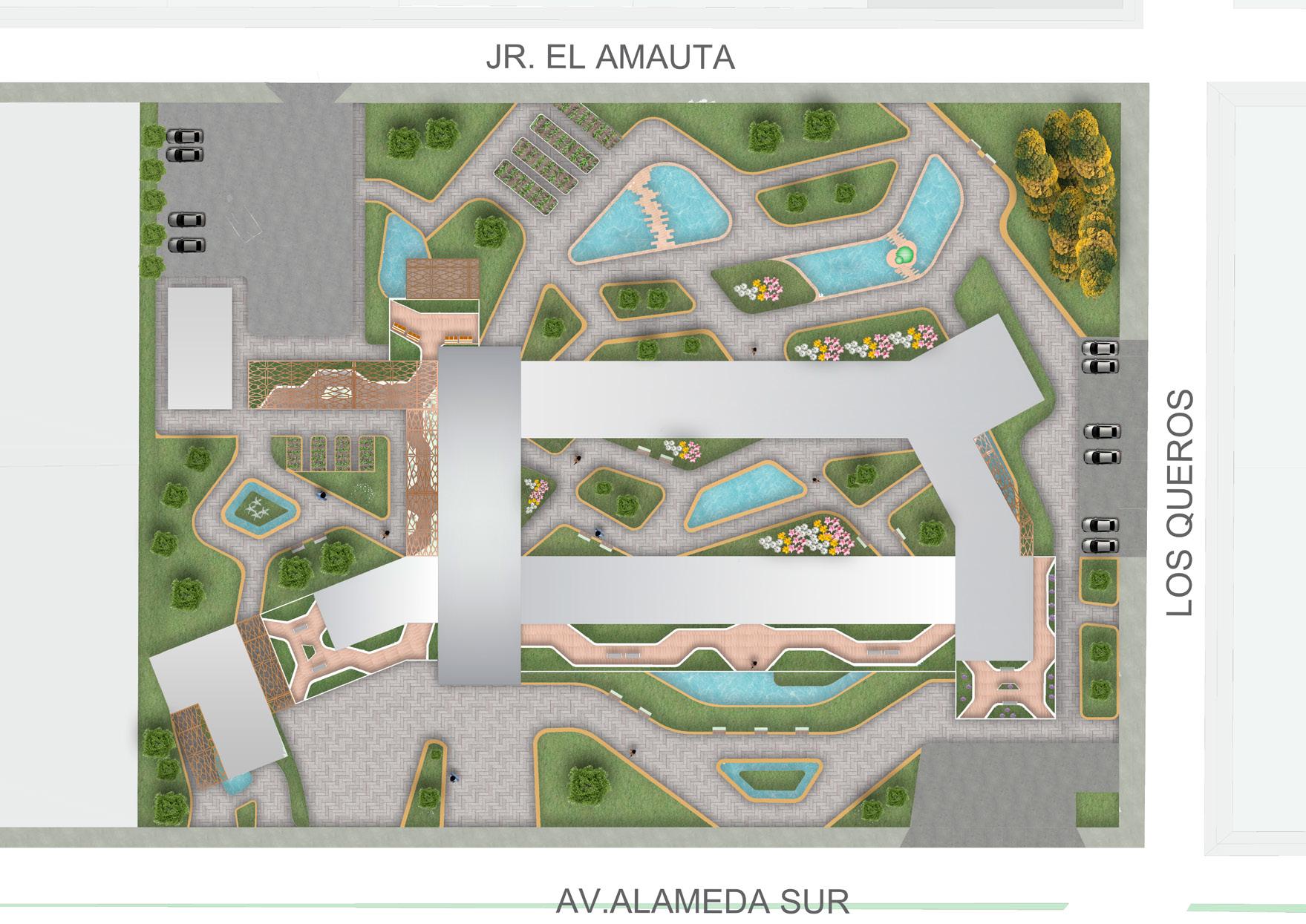El diseño del proyecto se busco un espacio que pueda ser utilizado por la comnunidad y que este a su vez genere una integración entre el público y su entorno, como parte de recuperación del espacio público como de la historia del Rimac.