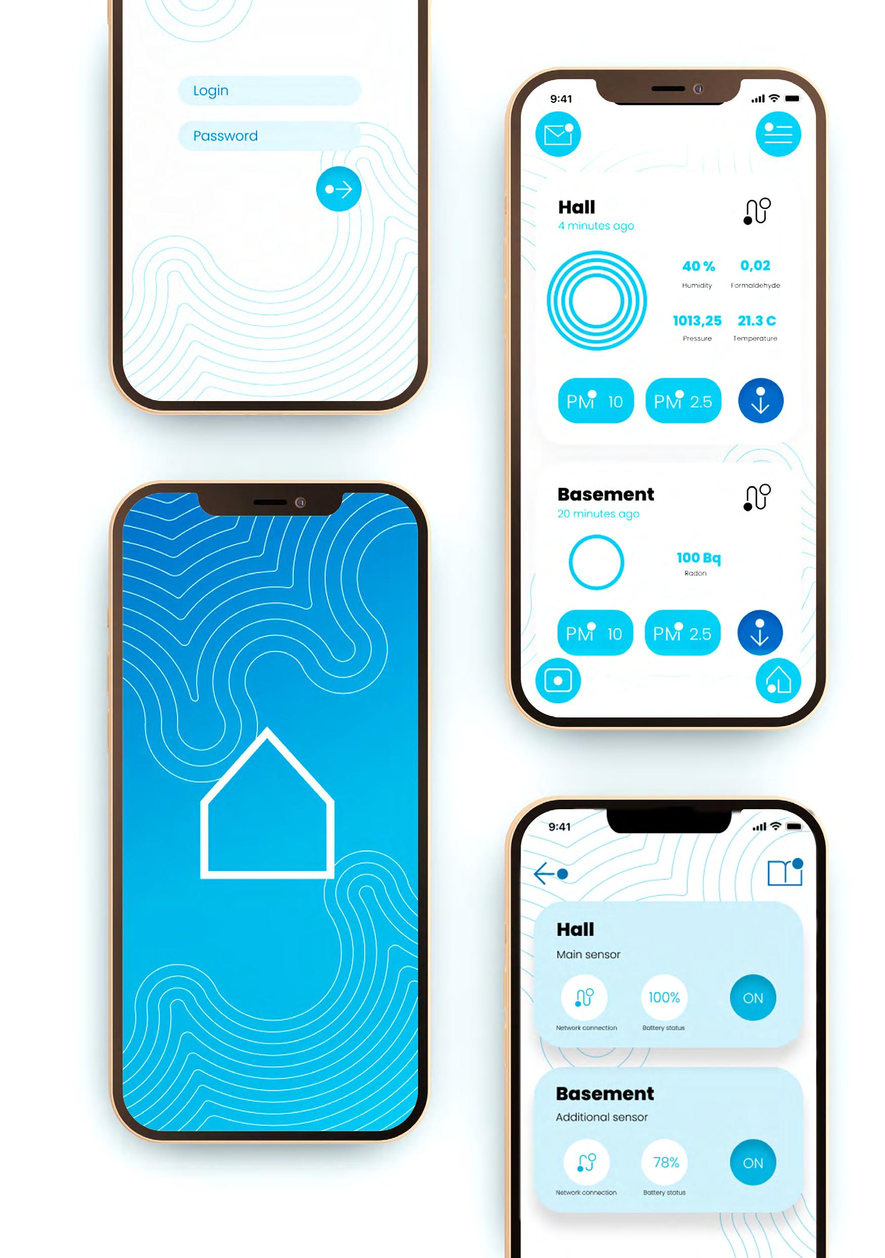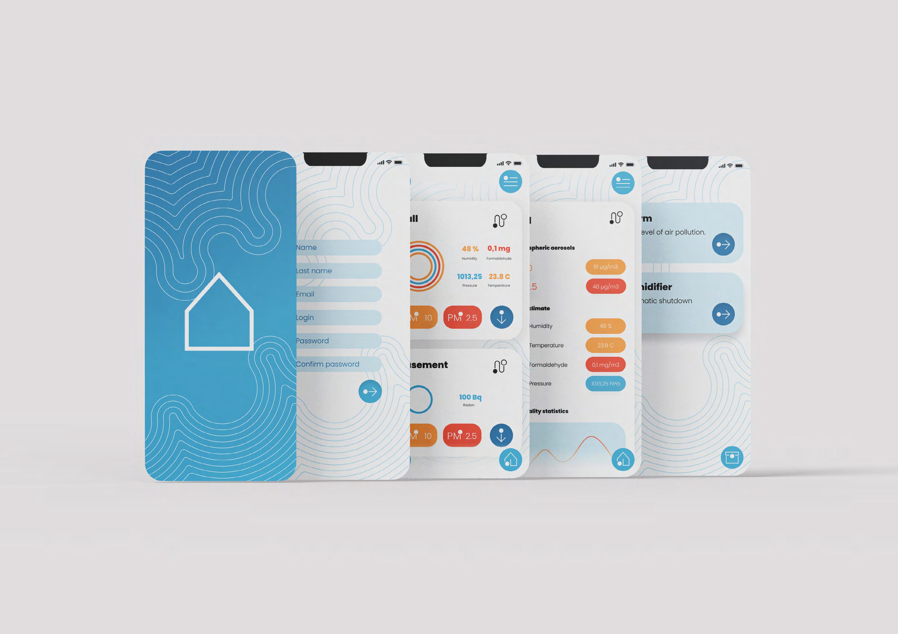 макет мобільного додатку Розробка мобільного додатка для моніторингу та контролю якості повітря в закритих приміщеннях. Мобільний додаток пов’язаний з датчиками, але на цьому діяльність програми не закінчується.
