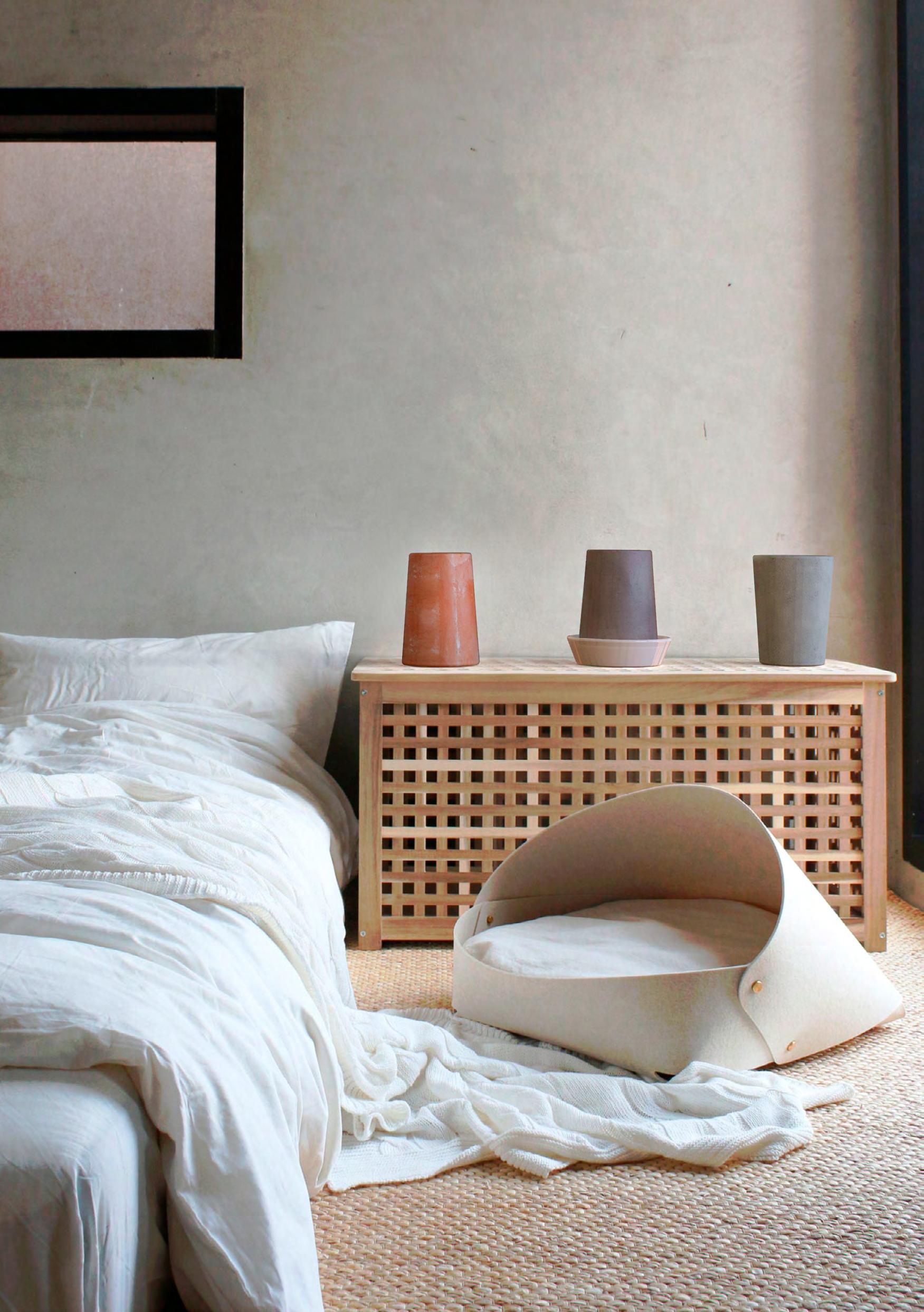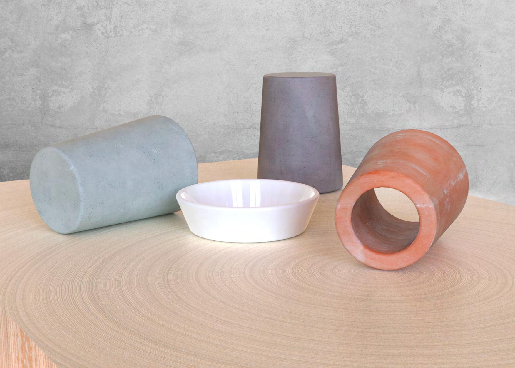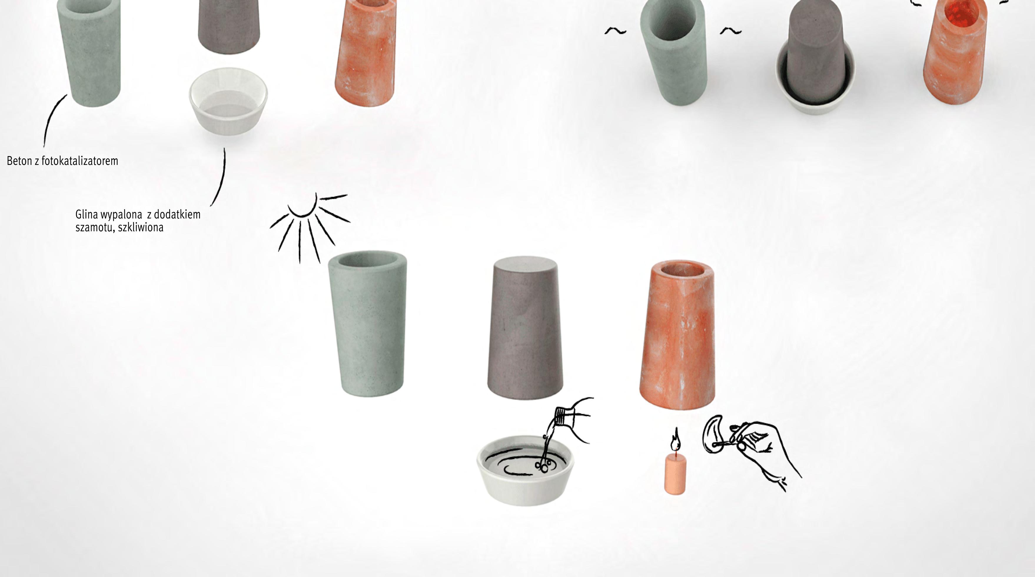 Перший об'єкт виконує функцію очищення, за допомогою бетону з додаванням фотокаталізатора на основі діоксиду Титану. Очищувач працює від сонячного світла, тому предмет слід розміщувати в місці, що має прямий контакт з денним світлом. Другий предмет зволожує повітря — це дві частини, зроблені з обпаленої глини з додатком шамоту. До нижньої частини потрібно залити води, а верхня — рівномірно поглинає її та висихає, тим самим зволожуючи повітря. Останній об’єкт іонізує повітря природним шляхом. Форма виготовляється з гімалайської солі, яка підігрівається зсередини за допомогою свічки. Подібний процес