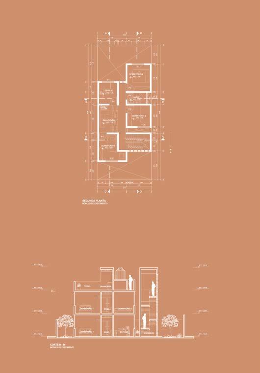 El concepto del proyecto, era plantear toda el área social en un primer nivel, y el área privada en el segundo nivel, generando de esta manera privacidad a los habitantes de estos módulos. De igual manera ordenamos nuestro recorrido con un núcleo vertical de escaleras y a su vez le dimos una mayor altura para jerarquizar este recorrido.