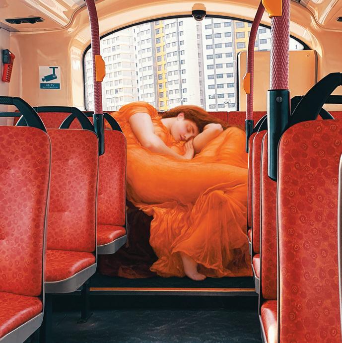 The local scenarios are from my personal experiences as a child, from the drink stall auntie in the hawker centre, to sitting at the back of a Singapore bus. I use classical figures which are all in the public domain and the figures I choose depend on the theme of the collage and the story I want to tell.