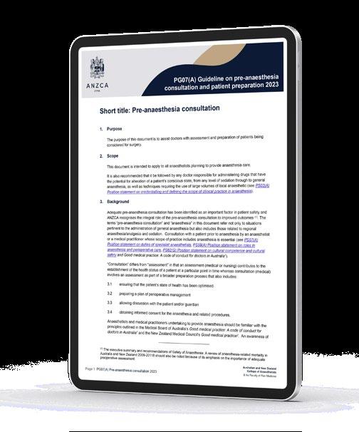 ANZCA, 630 St Kilda Road, Melbourne Victoria 3004, Australia +61 3 9510 6299 communications@anzca.edu.au www.anzca.edu.au