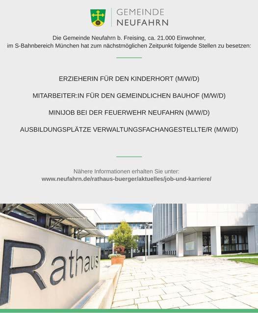 Su. LKW-Fahrer CE (m/w/d), im Nah-Fernverk. Tel. 0152/29390383 Mitarbeiter (m/w/d) gesucht Spezialisierte Rechtsanwaltskanzlei Nähe Prinzregentenplatz sucht zur Unterstützung des Sekretariatsteams Mitarbeiter (m/w/d) Voraussetzung PC-Kenntnisse; spezielle Fachausbildung wird nicht vorausgesetzt E-Mail: info@ ra-hoerl.de