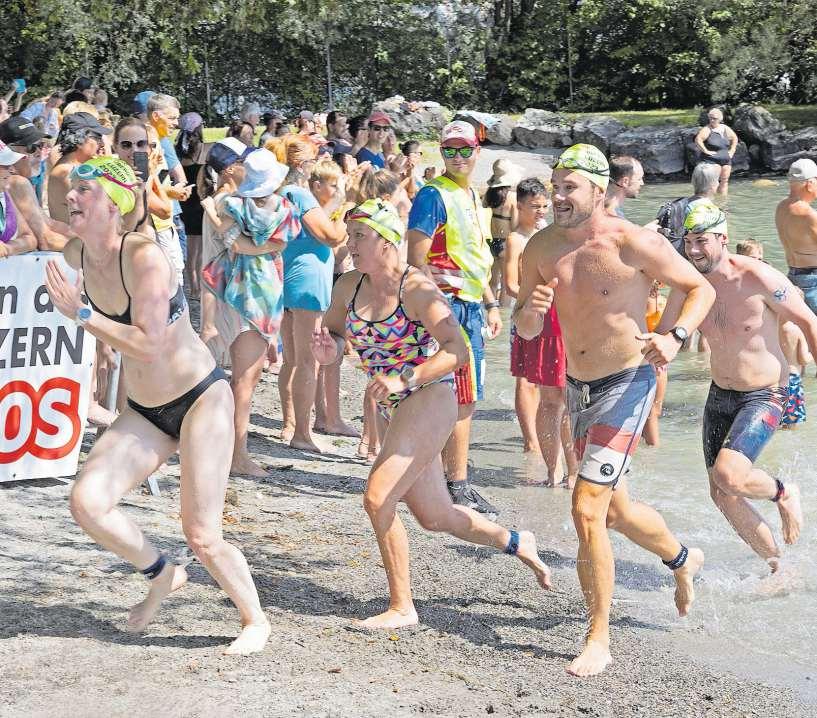 Am Schluss der Seeüberquerung galt es mit «schweren Beinen» noch ein paar Meter ins Ziel zu rennen Bild:AndréasHärry