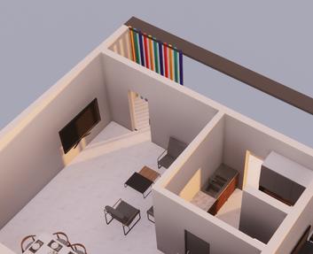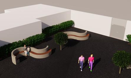 Thiselongatedcourtyardisinawayit providesprivacytoeachuser.Thereare twotypesofseating's,outofwhichoneis shadedbyatreeandpositionedinaway itgetstherequiredamountofsunlight.