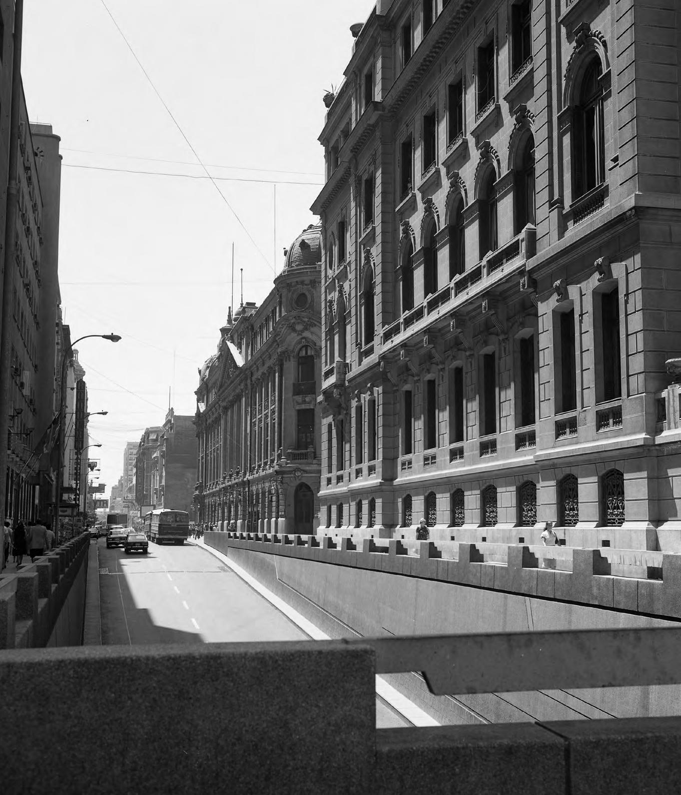 a more in-depth discussion about the moment in which architecture found itself, then orphaned from institutional support: the universities were intervened by the military government, there was no freedom of assembly, there was censorship, curfew, and travel to and from abroad was restricted. The Architecture Biennials, organized by the College of Architects seven years earlier, was a balsam of light in the so-called "cultural blackout" that the country was experiencing, but it was not enough. Miguel Laborde points out: "Once again, the world of art and culture will be marginalized. Architecture and urbanism, stunned by market forces that have left out any intention of shaping a certain model, begin to rethink themselves with the Architecture Biennials" 2. In the first Biennial there were no foreign guests; in the second, there were only two foreign architects present: Roberto Fernández from Argentina and Juvenal Baracco from Peru. The members of the group maintained - not without difficulty - the professional work of their respective offices, without the support of patrons, major sponsors, or competitive funds. The IV Architecture Biennial of 1983, directed by Pedro Murtinho and Fernando Perez, was also a look backward ("Past and present: the critical recovery of the past") but it produced a mobilization of energies unheard of until that time and made the need for a deeper debate on the role of architecture in society visible. Fernando Castillo Velasco's speech at the National Museum of Fine Arts, upon receiving the National Architecture Award, was another milestone of great relevance. 3