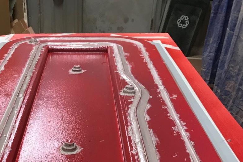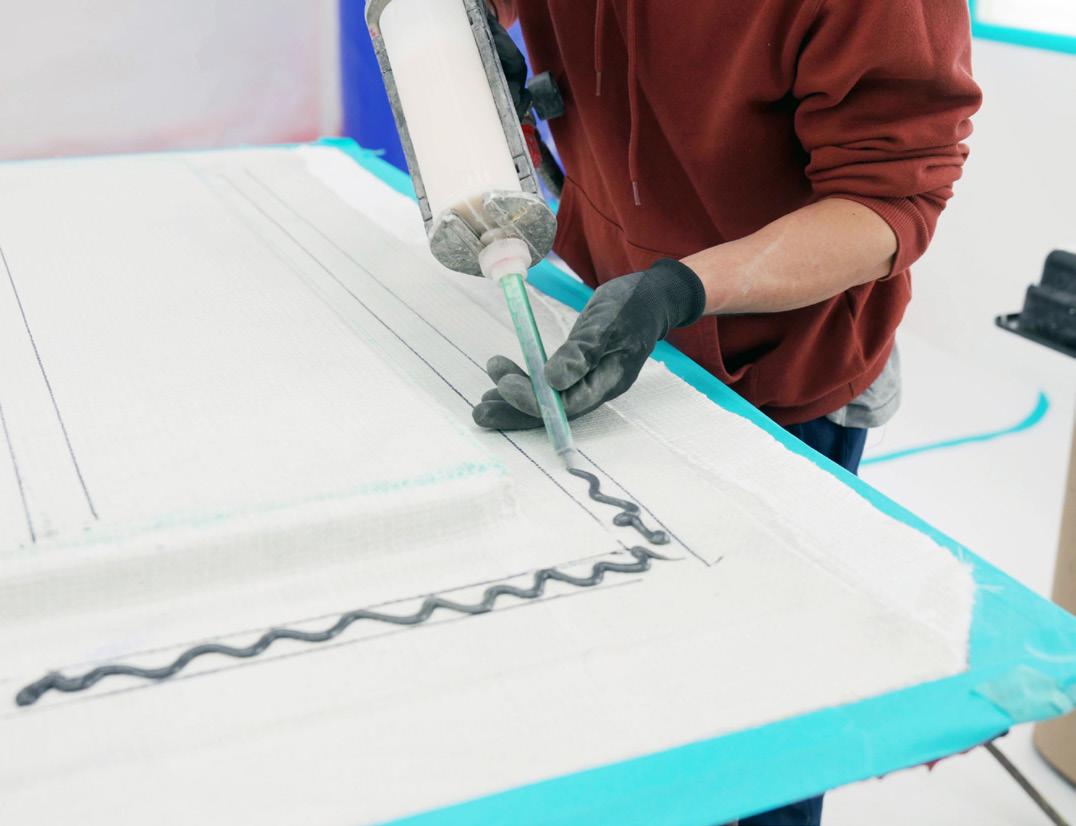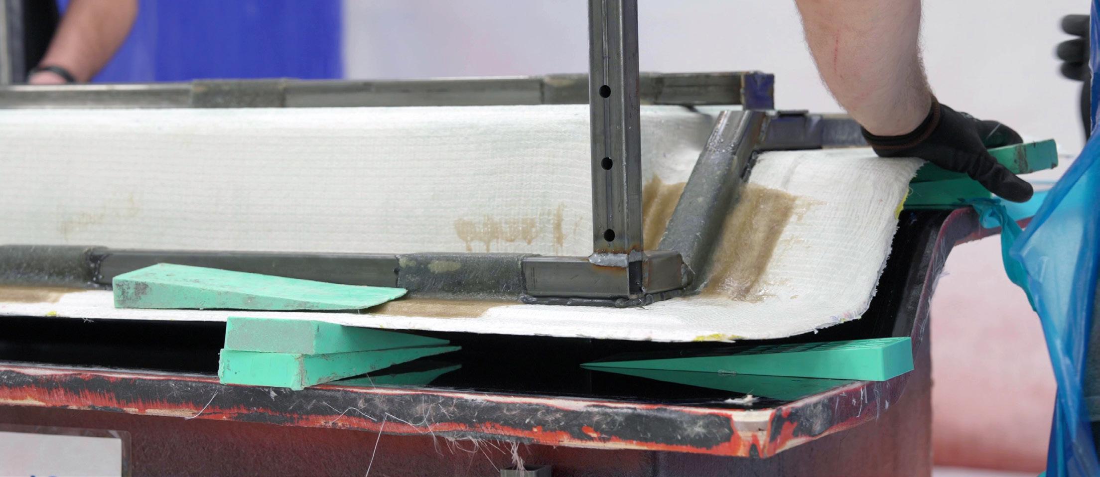 Adhesive is applied to the mold... ...then laminate is added to the frame.