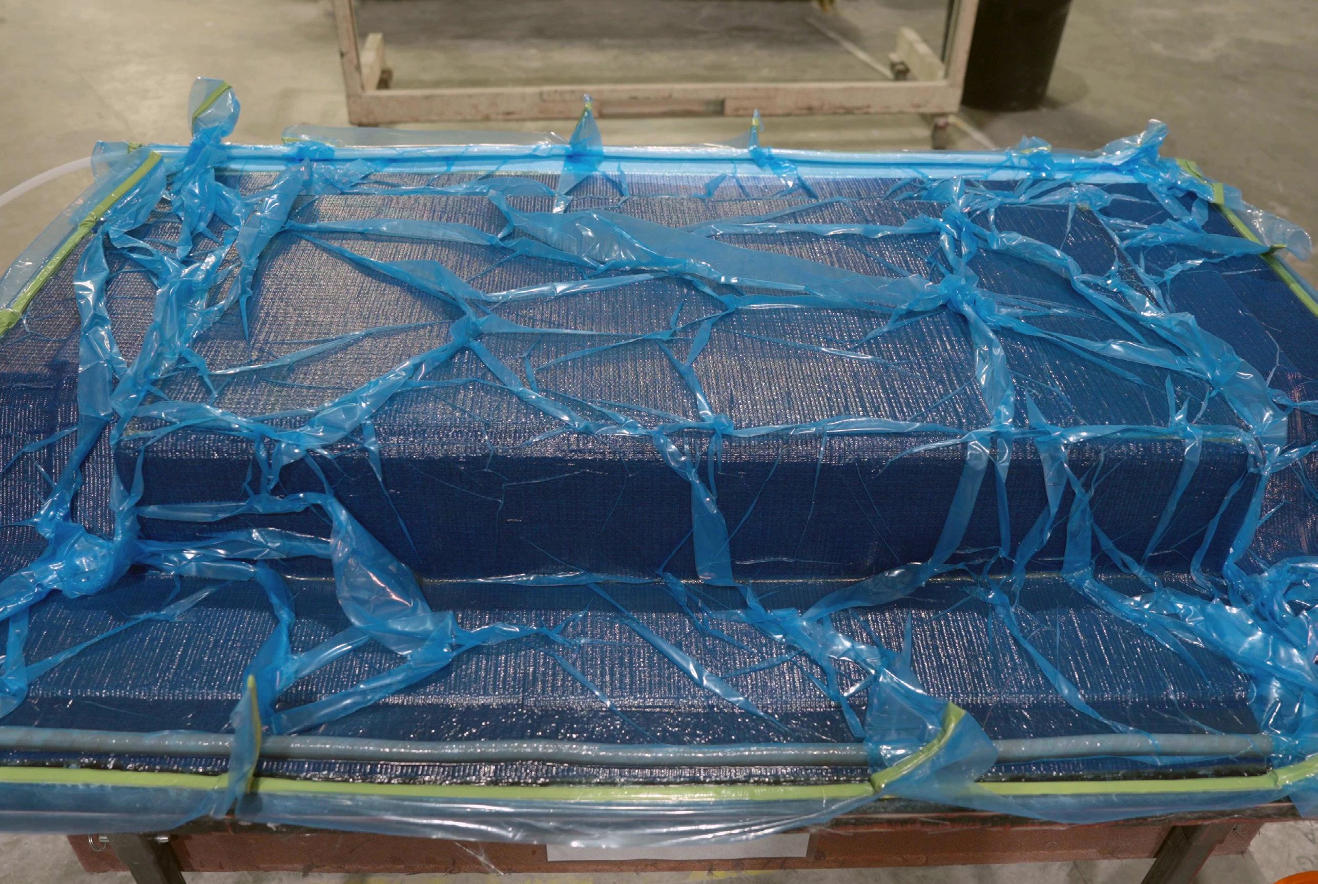 Once the infusion has completely filled the tool, clamp the feed line and keep the vacuum flowing. Continue the vacuum until the laminate is cured. It is recommended to leave the mold to cure under vacuum overnight. Next, stop the vacuum and remove the consumables, revealing the completed backside of the tool. It should appear completely white, indicating the process was successful.