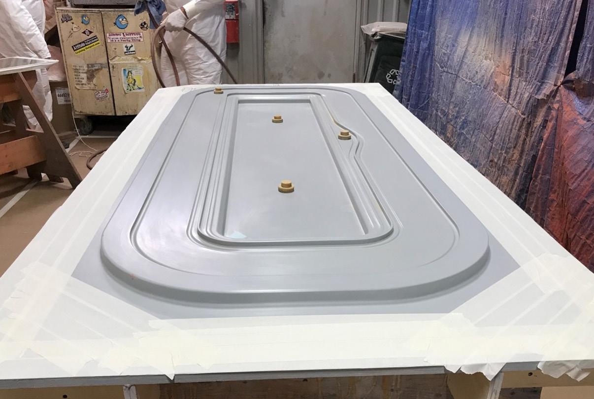The next step in the process is to apply the gel coat to the master model. The gel coat is applied in two layers.