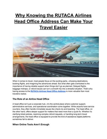 When it comes to travel, most people focus on the exciting parts choosing destinations, booking flights, and imagining the adventures ahead. But what often gets overlooked is the importance of having reliable support when things don’t go as planned Delayed flights, baggage mishaps, or refund issues can turn a smooth trip into a stressful situation That’s why having access to the RUTACA Airlines Head Office Address is more valuable than most travelers realize