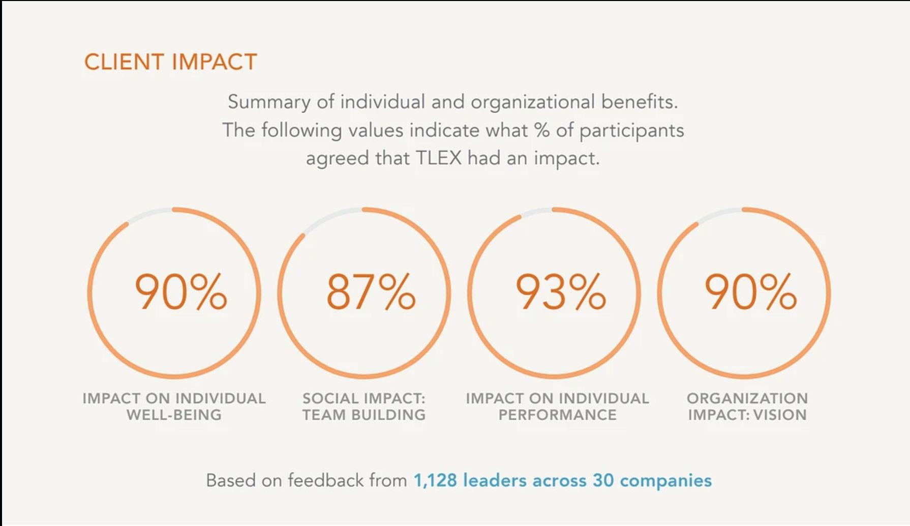 The TLEX Institute (Transformational Leadership for Excellence) offers experiential programs with integrated frameworks and empirically validated techniques for personal and transformational leadership. With a foundation in breath work, meditation and mindfulness, we enable greater well-being, mental health, increased productivity and performance for employees. Our unique tools for enabling awareness, connection and commitment have been taught to more than 200,000 employees, with over 500 companies globally. We