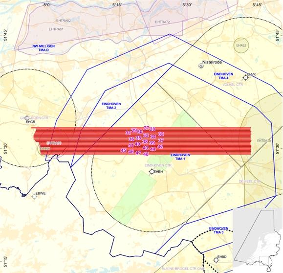 Vanaf donderdag 13 juli 2023 geldt onder een groot gedeelte van de Schiphol TMA 1 een tijdelijk gebied met beperkingen (TGB) waarbij u verplicht transpondercode 7020 voert en de Amsterdam Information frequentie 124.300 uitluistert.