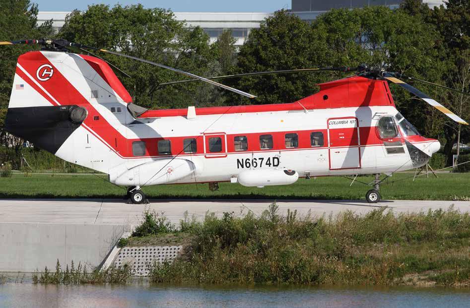 unieke Boeing Vertol 107-II’s twin rotor helikopter landde, die kort daarop gevolgd werd door een tweede exemplaar. Beide Vertol 107-II’s zijn van de Amerikaanse onderneming Columbia Helicopters en dragen een roodwit kleurenschema. Ze werden na een intensieve inzet in Turkije via Bergamo en Basel naar België overgevlogen om daar vandaan te worden verscheept. We mogen dit een uniek bezoek noemen, want dit type helikopter was enerzijds vroeger al behoorlijk zeldzaam in ons deel van de wereld, maar anderzijds zijn ze anno-nu een absolute zeldzaamheid. Opvallend is dat bij hun Vertol 107’s die tijdelijk in Westkapelle stonden, de