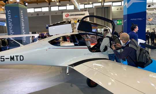 Naast de Velis Electro toont Pipistrel ook de Panthera op haar stand: een sportief, elegant vierzits toestel dat al bijna een decennium in ontwikkeling is. De Panthera is ontworpen voor hoge snelheid en effici-