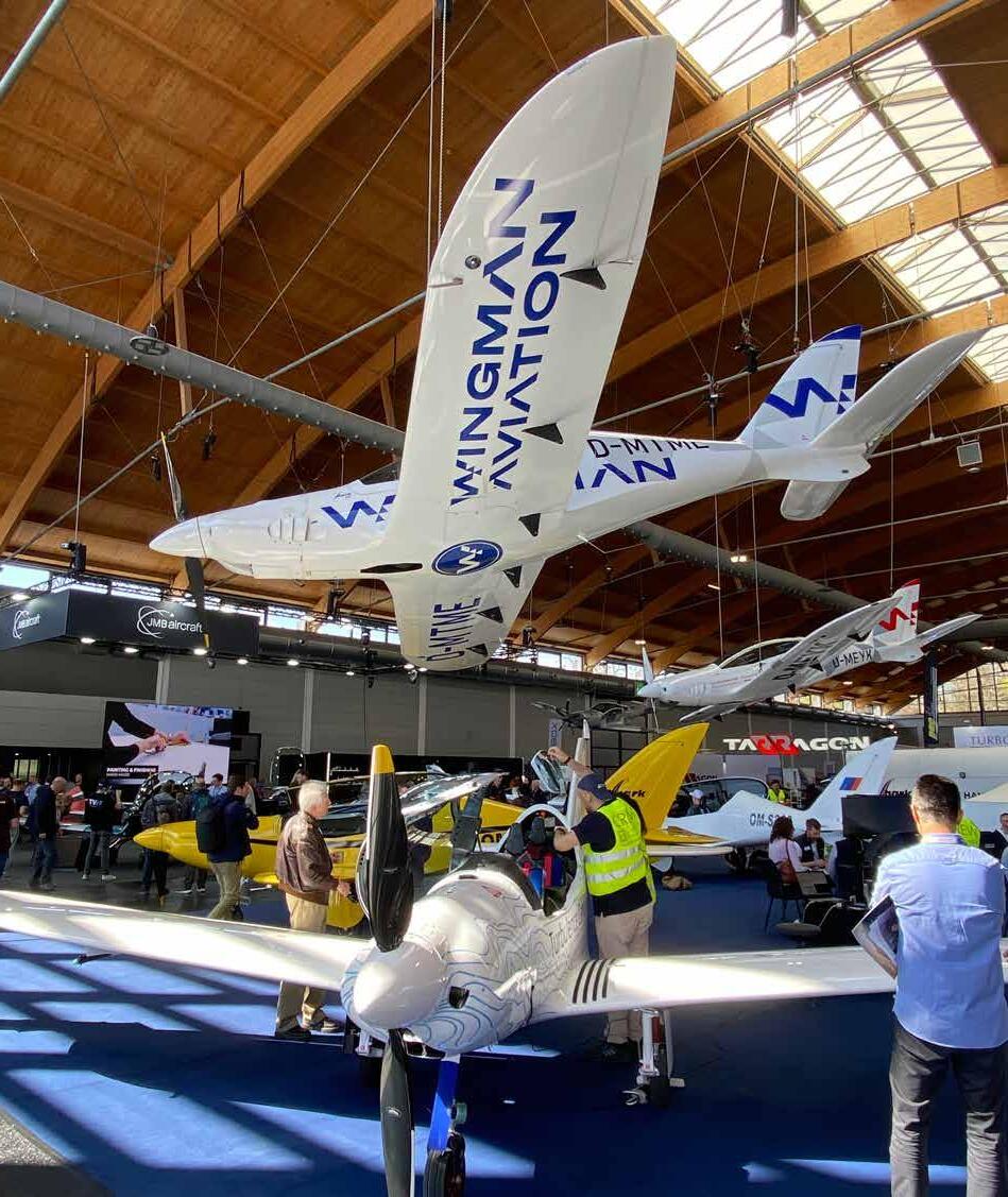AERO zou AERO niet zijn zonder primeurs. De Zwitserse Smartflyer SFX1 — een hybride vierzitter — stal de show met zijn 800 km bereik, 50% minder CO₂-uitstoot en 60% minder geluid. Dovetail Electric Aviation presenteerde het Dovepower retrofit-systeem voor toestellen als de