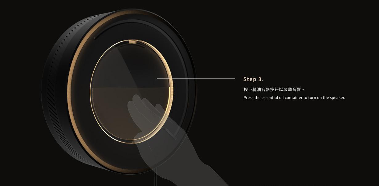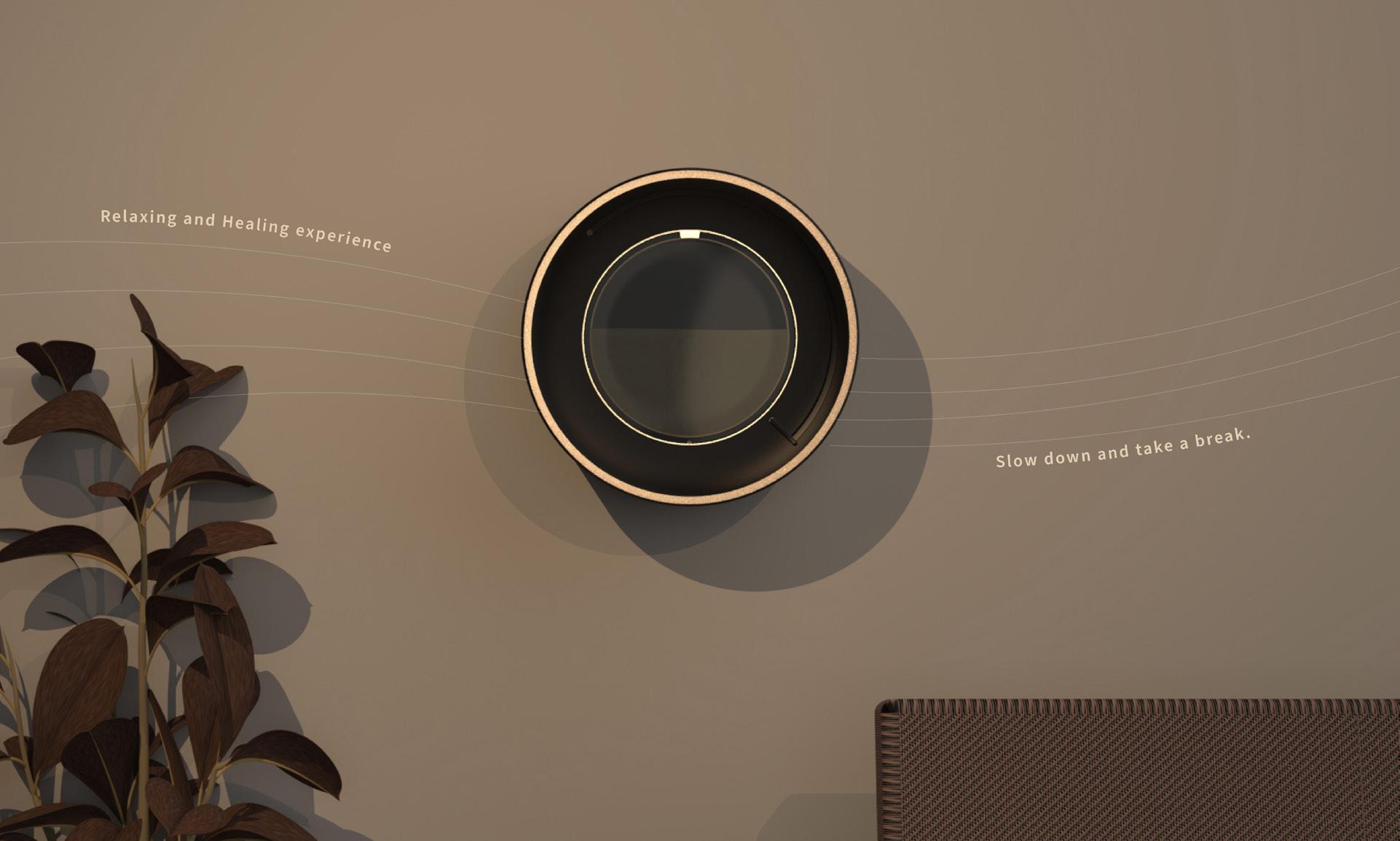 We designed REVOLVE as a scented Bluetooth speaker that hangs on the wall for home use. It provides a simple and comfortable way to relax and unwind after a busy day when returning home.